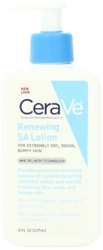 Cerave Sa Renewing Lotion exfoliates, smoothes and softens extremely dry, rough, bumpy skin- like those “please don’t touch” rough patches on your upper arms and legs, typically referred to as “chicken skin.”